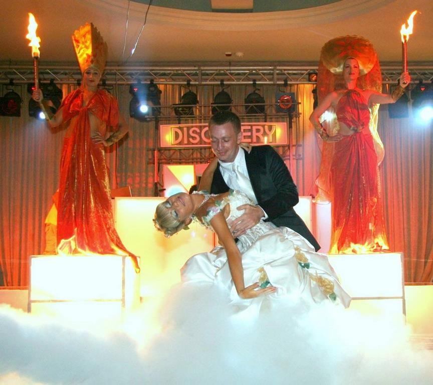 אחרי קבלת הפנים מתקיימת, על פי כללי הטקס, החופה. חתונות "שגרתיות" כוללות בשלב זה שיר רומנטי ברקע וזוגות הורים נרגשים שמלווים את החתן והכלה אל הרב. אתם בטח תוהים האם אפשר לעשות משהו קצת שונה ולשלב כאן כמה אטרקציות לחתונה. התשובה היא שבהחלט כן. הכנריות שליוו את קבלת הפנים יכולות לנגן את שיר החופה שלכם, או שתקליטו מראש דואט רומנטי ומלא אהבה שיהיה עוד אחת ממגוון הפתעות לחתונה שירגשו את האורחים. אפשרות נוספת היא כמובן מופעי זיקוקים או לייזר שיוסיפו גם צבע והרבה עניין. רגע לאחר שהכוס תישבר צפויים האורחים שלכם לרוץ אל שולחנות האוכל שלהם ולהמתין לכניסתכם אל הרחבה כזוג נשוי, ואתם מנחשים נכון – גם הכניסה הזו היא אטרקציה לחתונה. תוכלו ליהנות מליווי של רקדניות , כנריות או אפילו רובוט לייזר, מה שרק תבחרו כדי שכולם יידעו שהנה, הגעתם, ואפשר להתחיל לרקוד ולהשתולל כל הערב!